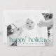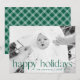 Send holiday cheer to loved ones with stylish and modern holiday photo cards! The simple holiday card features your full-bleed horizontal photo with "Happy Holidays" in a green, modern font overlay. Personalise the front of the photo card by adding your name and the year. The card reverses to feature a green and white modern plaid pattern.