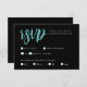 Elevate your wedding RSVP experience with our simple stylish black and white RSVP card. Featuring a chic design with bold and modern turquoise hand script against a sleek black background, this card exudes elegance and sophistication.