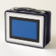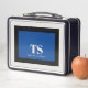 Simple and so stylish with a retro vibe, this custom lunch box has classic design elements of a bold contrasting colour block geometric rectangular frame in bold blue and black over an off-white background. A text template is included with monogram initials and name to personalise as you like. This look is stylish and sporty, yet simple and modern with gender neutral appeal.