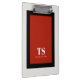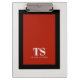 This distinctive clipboard design has classic design elements of a bold contrasting colour block geometric rectangular frame in vivid red and black over an off-white background. A text template is included with monogram initials and name to personalise as you like. This look is stylish and sophisticated, yet simple and modern with gender neutral appeal. It makes a great choice for back to school, home, or office.