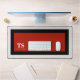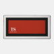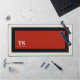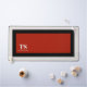This custom desk mat has classic design elements of a bold contrasting colour block geometric rectangular frame in vivid red and black over an off-white background. A text template is included with monogram initials and name to personalise as you like. This look is stylish and sophisticated, yet simple and modern with a sporty gender neutral appeal.