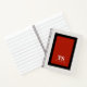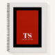 This distinctive notebook design has classic design elements of a bold contrasting colour block geometric rectangular frame in vivid red and black over an off-white background. A text template is included with monogram initials and name to personalise as you like. This look is stylish and sophisticated, yet simple and modern with gender neutral appeal.