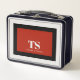 Simple and so stylish, this custom lunch box has classic design elements of a bold contrasting colour block geometric rectangular frame in vivid red and black over an off-white background. A text template is included with monogram initials and name to personalise as you like. This look is stylish and sporty, yet simple and modern with gender neutral appeal.
