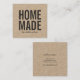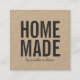 Stylish rustic kraft business card with the word "Homemade" in bold font and a stylish script for your name or store name in dark grey. This stylish square handmade business card is ideal for crafters and makers of handmade goods like artists, knitters, dressmakers, etc.