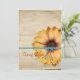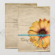 This design, which is a flat image, looks like a giant orange garden sunflower tied with an aqua turquoise bow on aged crinkled vintage antique parchment paper. This is a flat image, and not an actual flower and bow. The perfect thank you to coordinate with our Simple Sunflower Wedding and Bridal Shower invitations for a country wedding shower, outdoor wedding, organic wedding or other nature themed engagement event. Casual and simple yet stylish and unique. Customise it with your personal custom message on the back or leave verse as it is written. Botanical bridals.