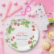 Simple Sweet Greenery Strawberry Baby Shower Paper Plate