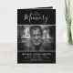 Customise this modern, simple funeral program with your own photo and text to create a special tribute to your loved one. An 'In Loving Memory' program featuring traditional black background with white typography. On the front cover a photo of your loved one, their name, dates, the memorial venue and date of the event. On the inside is an obituary and order of service; and on the back you have the option to add two further pictures, a thank you note and the venue of the wake. The text is a combination of handwritten calligraphy script and curviture serif font. All text is easily editable. If you need any help customising this, please message me using the button below and I'll be happy to help.