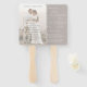 Modern wedding program hand fan featuring a simple design with a combination of a contemporary sans serif font, an elegant handwriting script and an italic font.