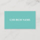 A simple modern minimalist teal and white design with Church Name on front and your Church Name/Pastor's Name/Details in black on back. Professional Church Business Card.
