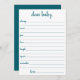 "Dear Baby" Simple keepsake baby shower or gender reveal party advice well wishes card featuring a fun, casual hand-lettered script. The classic design includes a modern handlettered quote typography overlay. For other colours or matching products, please visit the JustFharryn Zazzle store, or contact the designer, c/o Fharryn@yahoo.com All rights reserved. #bohochic #zazzlemade
