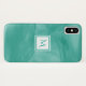 A simple subtle marble design Barely There iPhone X Case in teal green with a modern white square badge that you can personalise by adding your monogrammed initial to. This is part of the Arcadia Subtle Marble Monogram Collection.