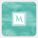 Simple Teal Green Subtle Marble Modern Monogram Square Sticker