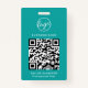 Custom ID name badge in a vertical layout with your logo and QR code. Use the template to add each employee name and title. The backside has your contact information and instructions for returning if found. This simple yet professional design features all text in white over a teal background and may be changed to any colour you wish by clicking the "customise" button. This corporate style ID badge may be personalised for any type of business big or small.