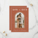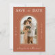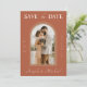 Surprise your guests with these cool Save the Date cards, featuring trendy terracotta background & custom arch shaped photo. Easily add your details by clicking on the "personalise this template" option.