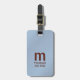 Elegant customisable luggage tag with chestnut brown bold monogram and texture blue background.