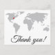 A simple thank you postcard with a world map on the front. Marker on map can be moved to show the appropriate location where the celebrations took place!
