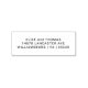 Simple return address wooden handle rubber stamp on three lines in a modern sans serif font.