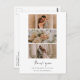 Celebrate your cherished memories with our Simple Three Photo Wedding Thank You Postcard – a modern canvas for gratitude that speaks volumes. This stylish postcard boasts a minimalist design, featuring three of your favourite wedding snapshots on the front, ensuring every angle tells a part of your love story. Cards are left blank on the back for those who want to add a personal touch to the backside with a handwritten heartfelt message to your guests.