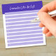 Simple, to do list notepad that has a customisable title at top, and lined numbers 1 - 10 down the left side. Top and lines in shades of purple.