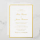 Simple Wedding Invitation with a thin border and your names in an elegant script. All design elements are in real gold foil. The classic, traditional layout makes this Wedding Invitation great for a formal wedding.