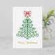 Modern non photo foil Christmas card featuring a simple and cute doodle of a Christmas tree with a bow along with the editable greeting "Merry Christmas".