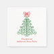 Modern Christmas napkins featuring a simple and cute doodle of a Christmas tree with a bow along with your choice of text.
