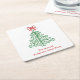 Modern Christmas paper coaster featuring a simple and cute doodle of a Christmas tree with a bow along with your choice of text.
