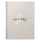 Trending towards simple styling with designer appeal, this modern notebook design features your name spelled out in a handwritten calligraphy script in black with leading and trailing tails to add a stylish look. Your first and last initials are presented in a modern industrial serif type face in white beneath the calligraphy over a neutral beige background. The result is stylishly you! PLEASE NOTE: When personalising your name on this item, be sure to leave the box symbols before and after your name. This is what causes the lovely tails to print before and after your name.