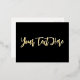 Add your own words to this bold and stylish postcard, in elegant script typography. On a sleek black background, your text will appear in your choice of gold, silver or rose gold foil.