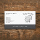 An elegant and simple business card design for Turkey breeding or farm. The clean layout features an artful line illustration of a Turkey that captures the essence of your speciality product. Fully customisable text lets you tell your farm's unique story. Ideal for family farms, food markets, grocery shops and premium food retailers or just Thanksgiving!