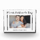 This simple, black and white Father's Day photo block for the first time father features a simple white background with black vintage typewriter text typography that says "First Father's Day." Add a photo of the new dad and the baby, with room to personalise with names and year.
