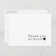 Simple typewriter style lettering thank you postcard with heart. The back includes a return address, space to handwrite a personal message and signature text which all can be deleted in order to write a personal message once your postcards arrive.