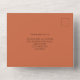Simple Typography Terracotta Wedding All in One Invitation. Simply seal and send - no envelope is required. Minimal style to send your guests all the information they require for your wedding day, with this invitation, details and convenient reply card with your return address details all rolled into one and the option of adding the recipients' name and address too. Please order each invitation separately if you wish to utilise the option of personalising each invitation with your recipients' name and address to save handwriting them. TIP: complete the rest of the invitation details first, then put your first recipients name and address details here. Once you have added your first invite to your cart, you can click on the image of it in your cart, which will take you back to the product then simply add your next recipients name and address. It won't override the previous ones already in your cart. PLEASE NOTE you can delete this text if you prefer to order in bulk and add your recipient name and address details upon receipt. If you need any help please message me.