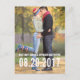 Modern Photo Save the Date Postcards. Bold white typography text overlay trendy design with your engagement date. Elke Clarke©. Replace sample with your own engagement photo. Add your wedding date, names and location. Use the prompts or select "customise it" for more editing options and to change colours of the text.