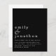 Simple Typography White Black Wedding.A budget price SMALLER 4.5” x 5.6” alternative. Available in a SEMI-GLOSS 110 lb CARD STOCK which is the default option (thicker for invitations), OR a SATIN FINISH 80 lb THINNER PAPER STOCK (ideal for enclosures). Envelopes are an optional extra and are slightly larger than the card size. Simple and. Informal, your first names are large in stylish lowercase with the details at the beneath. Easily personalise the text.