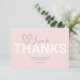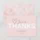Say thank you to friends and family with this simple Valentine themed thank you card. The design features the words Love and Thanks trendy hand lettered script typography with a bold modern font and heart over a pale pink background. The card reverses to a stylish watercolor x and o pattern. To see the matching invitation suite visit www.zazzle.com/dotellabelle.
