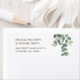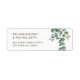 Watercolor eucalyptus leave on a white background. Use this label with full names as an addition to the casual wedding invitation with first names only.