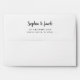 These minimal, white solid colour wedding invitation envelopes feature simple, watercolor green leaves on the inside. Trendy script typography on the back flap (where your names and return address are pre-printed) adds a fresh look to make these envelopes perfect for rustic, minimalist, or any elegant botanical outdoors wedding.