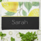 Simple Watercolor Lemon Leaves Black Monogrammed Tea Towel