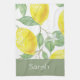 Simple Watercolor Lemon Leaves Sage Monogram Tea Towel