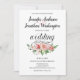 Simple Watercolor Pink Rose Bouquet Wedding Announcement