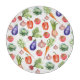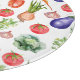 This "Watercolor Vegetables" cutting board features a pattern with vegetables.