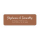 Enhance your wedding invitations with our charming, classic, and simple burnt-orange return labels, designed to bring a touch of elegance and convenience to your special day. Their polished, minimalistic design beautifully complements your wedding theme, offering a personalised, professional finish to your invitations.