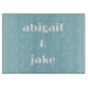 Turquoise background. Custom wedding white text couple names. Simple. Wedding Gift.