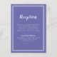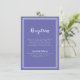 Simple, minimalist and elegant Wedding Reception Information enclosure card features a contemporary design with a double frame border in crisp white on a trendy periwinkle blue background. Traditional wording provides timeless yet modern sophistication. Personalise wedding design with your details in white lettering and script. The back of the card matches in solid blue.