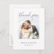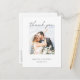 This simple, chic photo wedding thank you postcard template features a crisp, modern design. We've chosen a stylish modern script for 'thank you' on the front. We've positioned this part of the design so that it flows into the top of your photo. Our sample photo works well with this feature, as the photo has a simple light background at the top. If your favourite photo isn't as well suited to this overlap, or if you're just curious about what a different version of this design looks like, please check our shop. We have a similar version with the 'thank you' positioned above the photo. The 'thank you' part of the design can't be altered. But you can change the colour and font of any other text to suit your style. The default text colour on the front is black. We've set the background on both sides as transparent, so that the base colour will simply be the colour of the paper. You can change this on one or both sides by choosing a colour instead. We've put some sample text on the back for you to replace with your own message as you see fit, but please don't feel restricted by this. If you prefer delete our sample text entirely and keep that part of the postcard totally blank so that you can write a handwritten note on the back of each postcard instead, you can do that. Or you might want to replace our text with your own message of gratitude and your own closing and then hand sign your names when you receive the cards. In any case, please do remember to remove all of the sample/placeholder text on both sides, including the sample return address on the back as well as the front sample details and photo! We've chosen matte rather than semi-gloss as the default paper choice, as it is well suited to writing your own message on and won't smudge. You can of course change this to semi-gloss if you prefer. Make this stylish modern wedding thank you postcard uniquely yours with the intuitive design tools, your favourite photo and your inspiration!