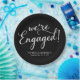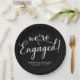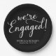 Simple We're Engaged Engagement Party Black Paper Plate