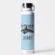 This design features a simple fun unique whimsical nautical, with ocean sea shark bite funny, a cute typography style design, a trendy stylish blue grey grey, a funny creative cool fish marine, a custom customise the personalised name, a scary novelty fish marine life, with nature animal water sea life, a coastal beach living house warming, a cool water bottle drinkware