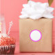 The white sticker has a magenta border.