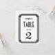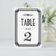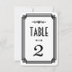 These table numbers feature a black and white colour palette, a geometric frame, and other stylistic details all inspired by Art Deco and the roaring twenties. You can customise the sample text fields to your liking.